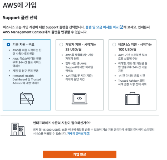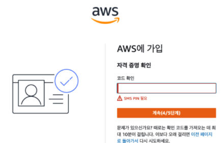 AWS 메인 사이트 우측 AWS 계정 생성 버튼을 누르고 아래와 같이 회원가입을 진행한다.