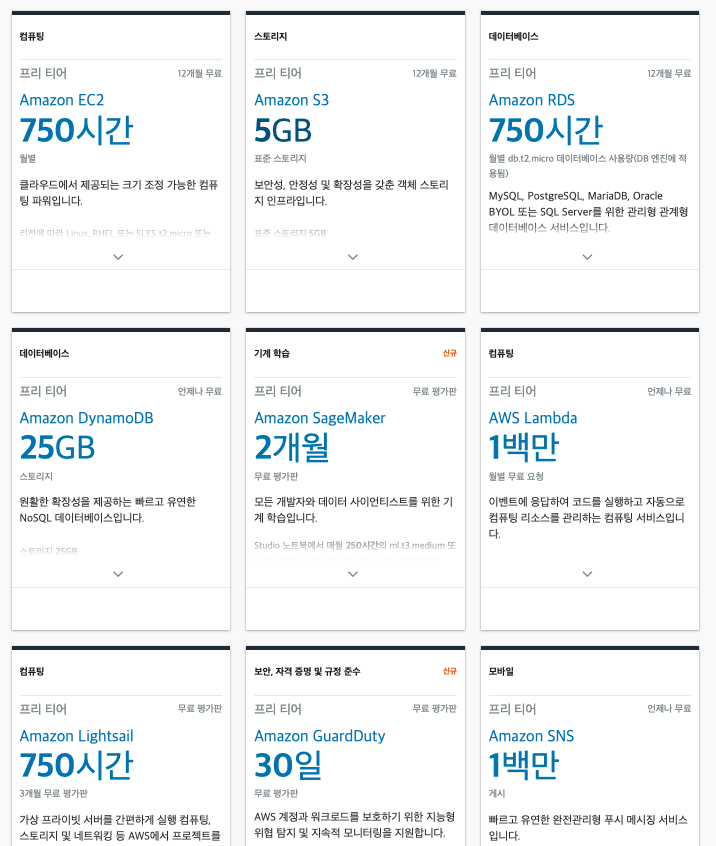 AWS는 처음 가입한 날부터 12개월 동안 프리티어 기간을 사용할 수 있다.