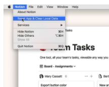 노션 앱, 왼쪽 상단바 - Reset App and Clear Local Data로 해결할 수 있다.