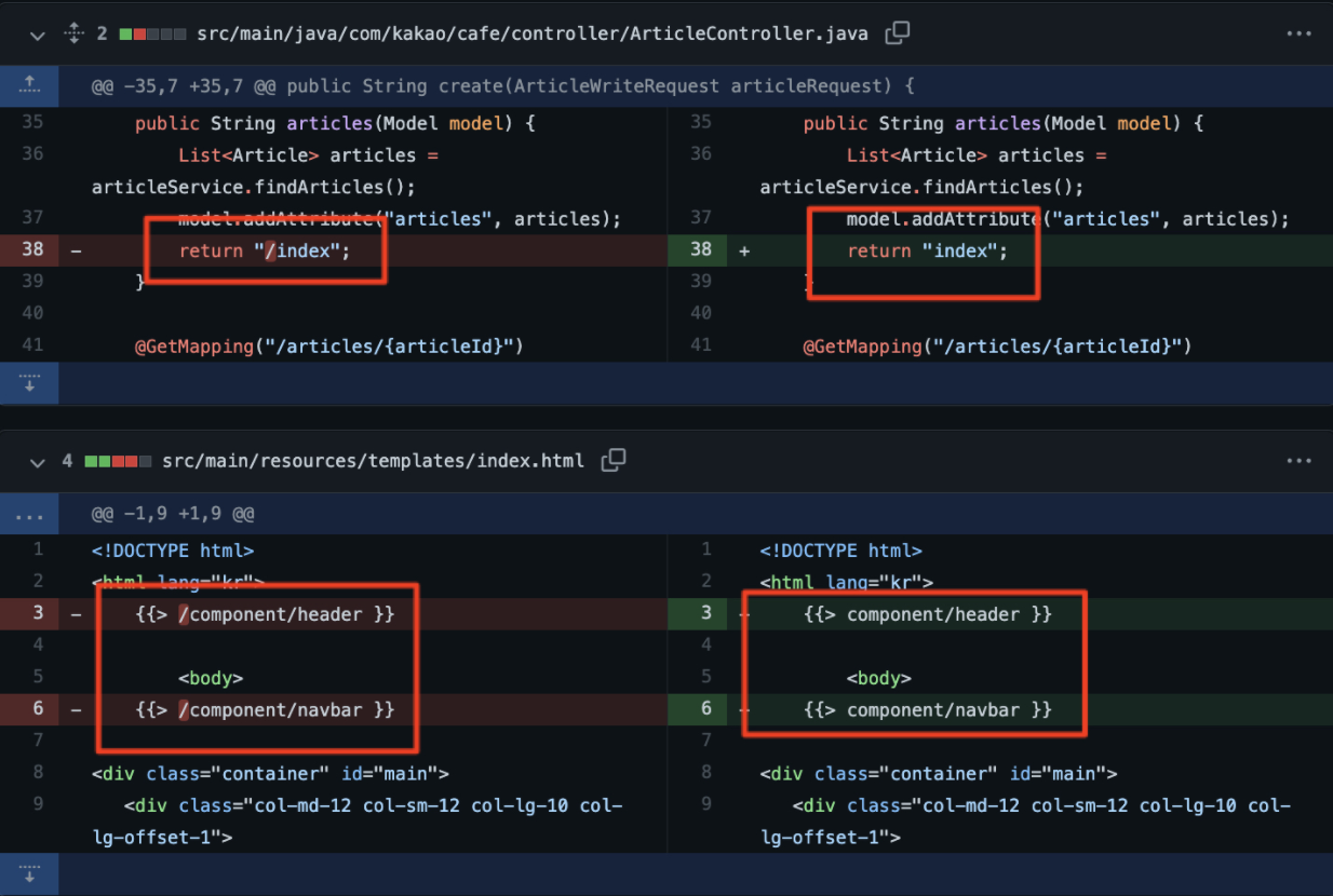 ./gradlew bootRun으로 실행할 때 컨트롤러에서 경로를 "index" or "/index" 모두 문제 없이 응답해준다.