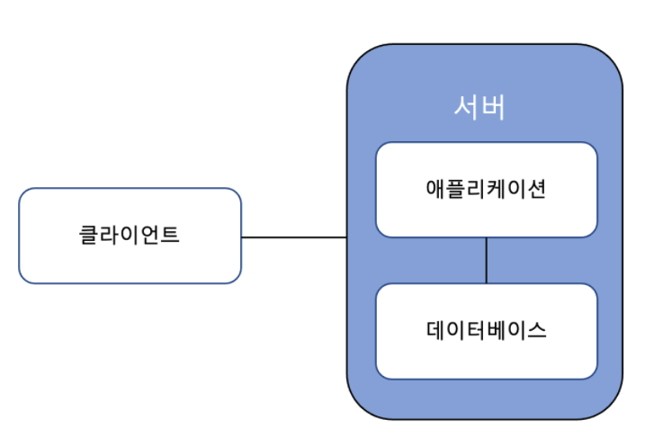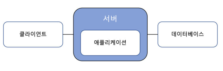 하나의 서버에 애플리케이션과 DB가 함께 있다.