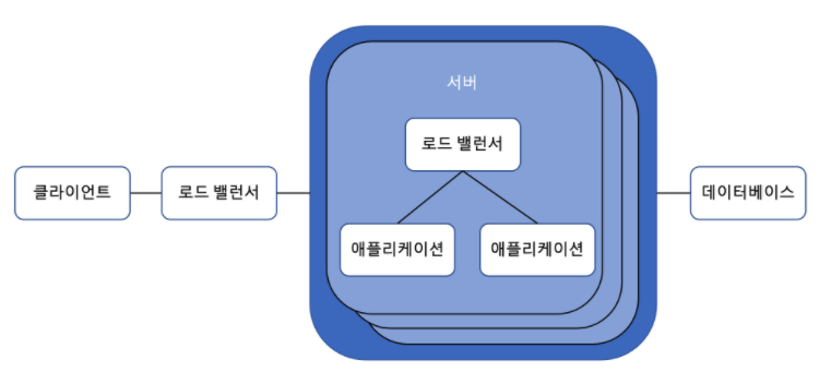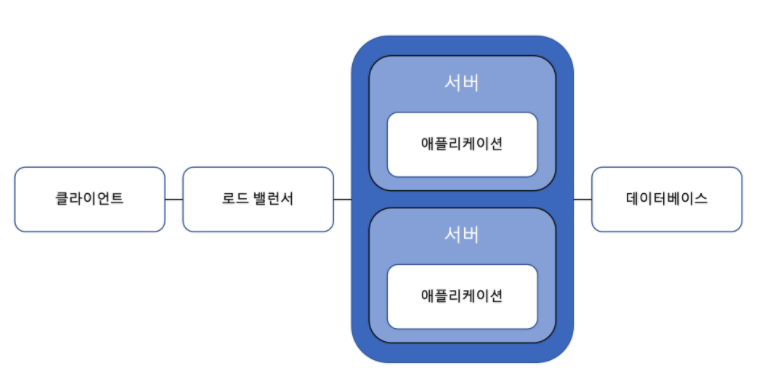 클라이언트가 애플리케이션을 실행하는 서버와 직접 통신하는 대신 로드밸런서라는 서버와 통신한다. 애플리케이션 서버를 여러 대 사용할 수 있고 로드 밸런서가 애플리케이션 서버들의 상태를 보고 적절하게 분산하여 클라이언트 요청을 분할해준다.