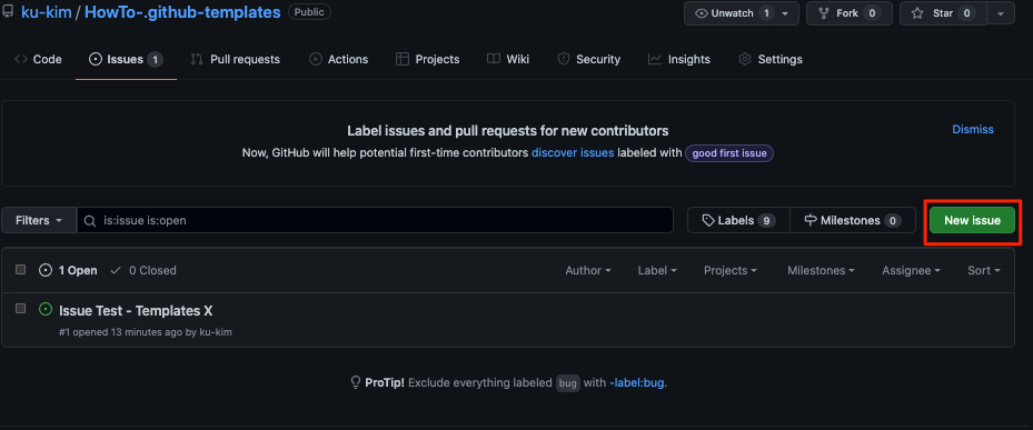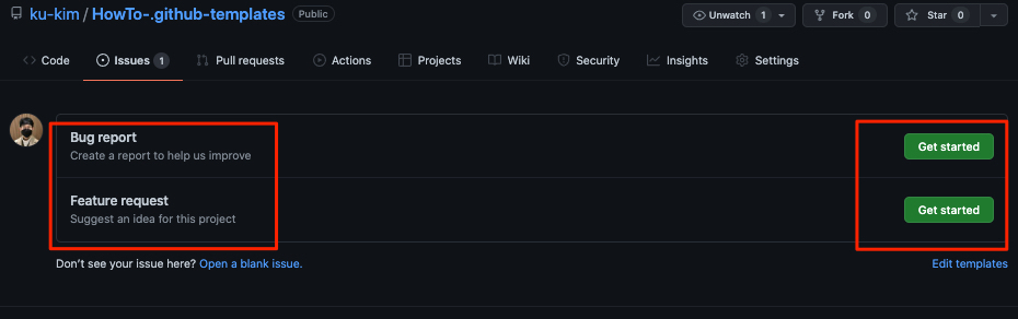 1개의 Issue Templates