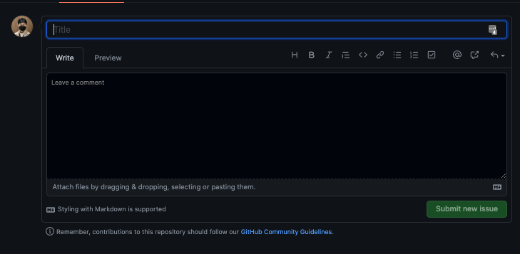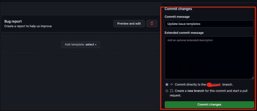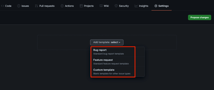 저장소 최상위 폴더에 ".github 폴더"에 Templates file를 추가하여 기본 템플릿을 지정할 수 있다. (단, .github 폴더는 github 저장소의 defalut(기본)에 있어야 적용된다) (소스코드 저장소)