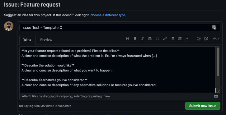 Issue는 Templates를 1개 이상 만들 수 있다. .github/ISSUE_TEMPLATE/ 폴더 밑에 n개의 .md를 만들면 된다.