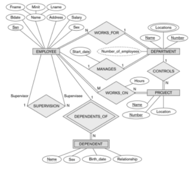 - 관계 (Relationship) : 개체가 개체를 연결하는 정보이다. 관계도 속성을 가질 수 있다. 1:1, 1:N, N:M의 세 가지 관계가 존재한다. 반드시 필요한 관계는 겹줄로 표현한다.