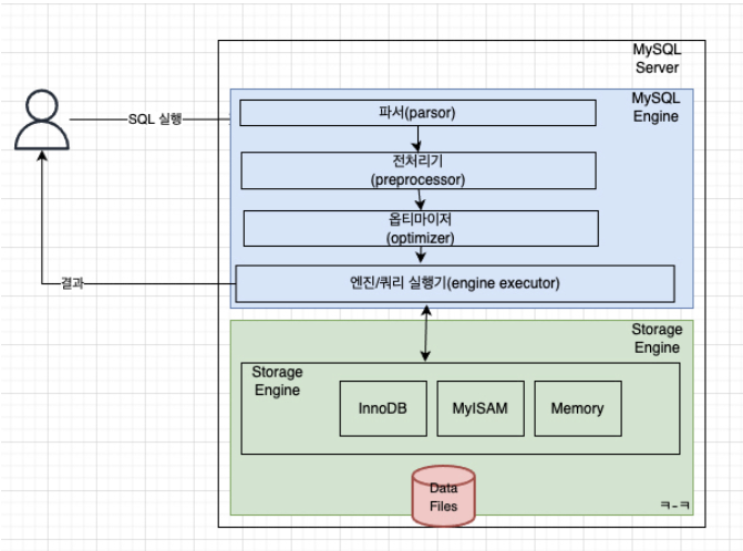 MySQl 서버는 크게 MySQL 엔진과 스토리지 엔진으로 구분할 수 있다.