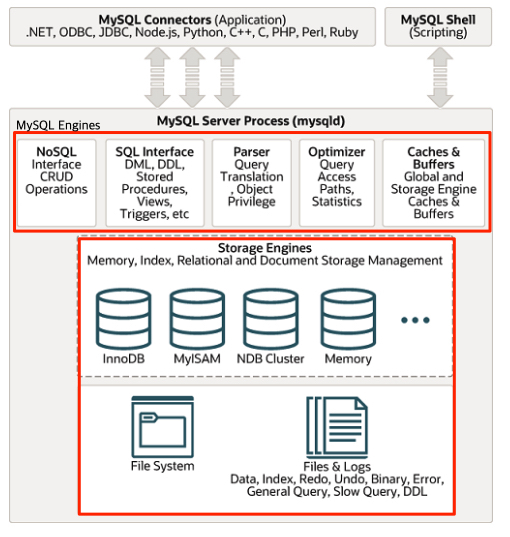 아래 사진은 MySQL 공식 문서 중 MySQL 서버 아키텍처 사진이다.