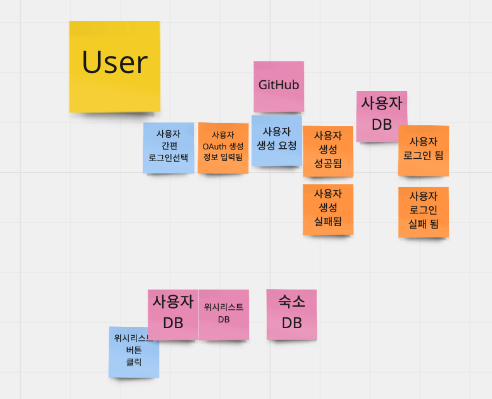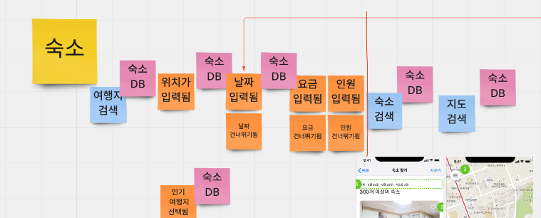 한 달 전 호눅스의 추천으로 Pivotal - 이정인 매니저님의 마이크로서비스 개발을 위한 Domain Driven Design 영상을 감명 깊게 봤다. MSA와 DDD를 하겠어! 라기 보단 영상의 Events storming, Boris diagram, Snap-E 과정을 거치며, 와! Domain, 요구사항 분석을 이렇게도 할 수 있구나? 를 배웠다. 이번번 프로젝트에 적용하고 싶었고 다행히 팀원(제리)도 동일한 생각을 가지고 있어 어려움 없이 첫날 연습해 볼 수 있었다. 영상에서 오랜 기간 실무자, 개발자 모두 모여 함께 수정한다고 했다. 초보자인 우리는 당연히 문제가 많았다. 하지만 기존과는 다르게 App의 전체 흐름을 살펴볼 수 있었고 Aggregate의 관점을 조금이나마 바라볼 수 있었다.