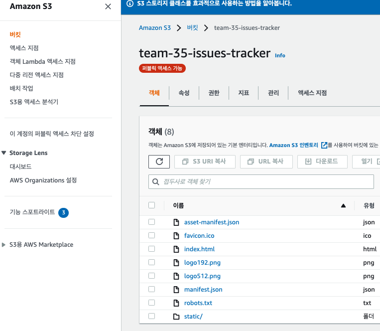 "Resource": "arn:aws:s3:::team-35-issues-tracker/*" # 접근 권한을 주고자하는 버킷을 입력한다. (입력 포맷 : arn:aws:s3:::버킷명/*)