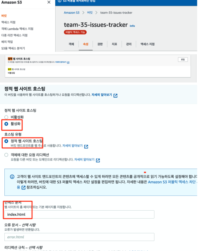 1. S3의 버킷 생성과 정적 웹사이트 호스팅 설정한다.