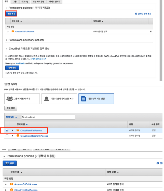 기존 S3에 접속하는 사용자에 CloudFront 권한 추가