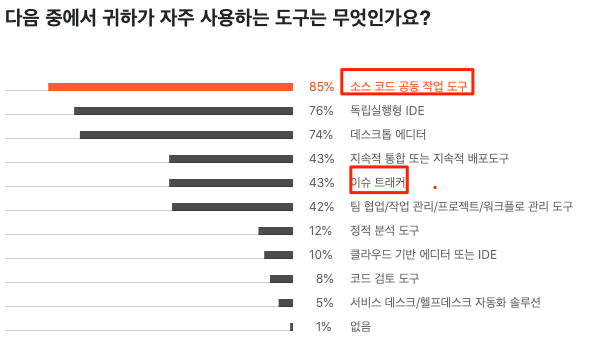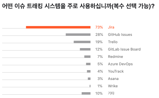 설문 결과를 보면 많은 회사에서 Atlassian 사의 Jira를 가장 많이 사용하고