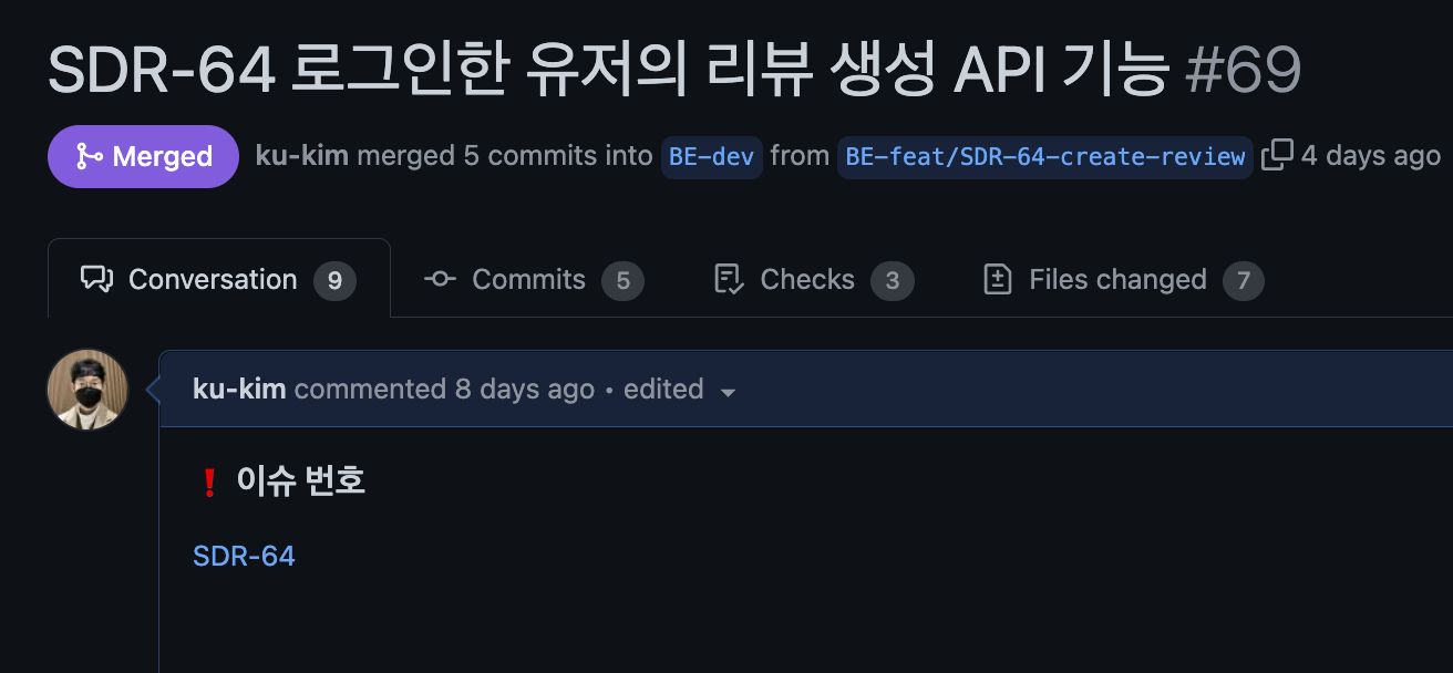 PR 본문 내용에 [SDR-64]와 같이 대괄호에 이슈 번호를 넣으면 자동으로 지라 이슈 링크가 생성됩니다.