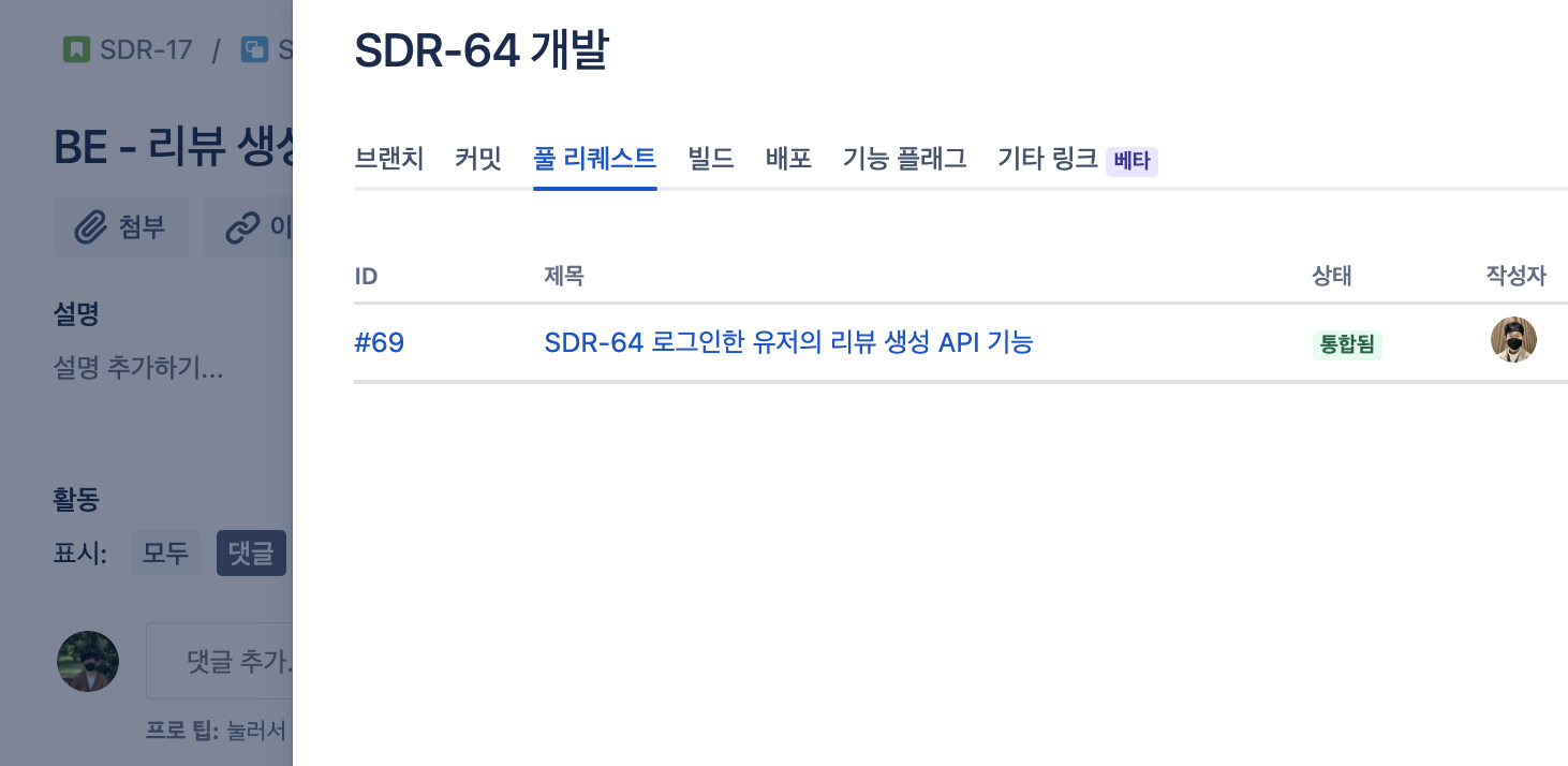 Jira 이슈(e.g. SDR-64)가 하나 있습니다.