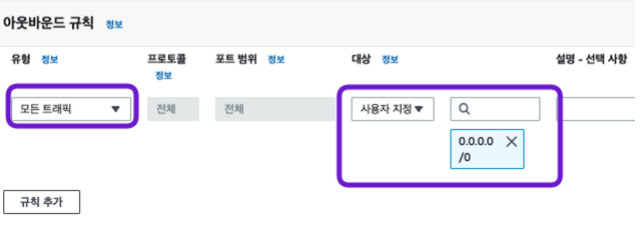 보안 그룹 선택 : 위에서 생성한 보안 그룹을 선택합니다.