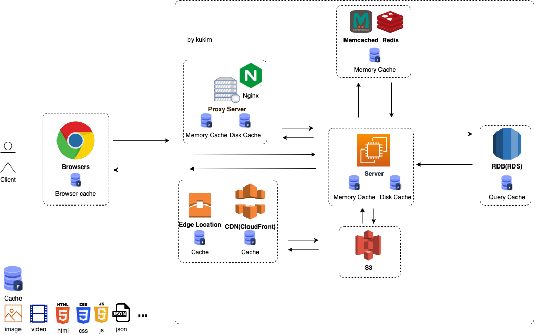 - CDN 캐싱: 전 세계에 분산된 캐시 서버를 활용한 캐싱