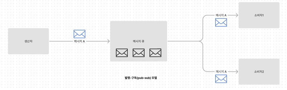 발행-구독 모델에서는 토픽(topic) 개념이 중심이 됩니다. 토픽은 메시지를 주제별로 분류하여 관리합니다. 생산자는 특정 토픽에 메시지를 발행하며, 이 메시지는 그 토픽을 구독하는 모든 소비자에게 전달됩니다. 이 모델을 통해 하나의 메시지가 여러 소비자에게 동시에 전달될 수 있습니다.