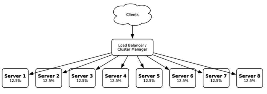 서버가 8대가 있다면 서버 1대 당 전체 트래픽의 12.5% (100/8)를 처리합니다.