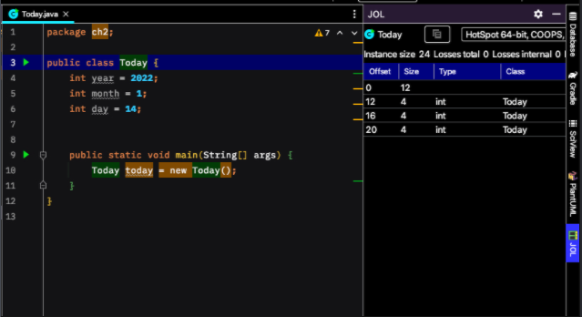 Today 객체를 생성했다. today의 메모리 크기는 얼마인가?