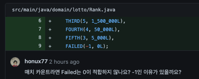 로또 당첨 순위(Rank) 표현하기 위해 enum을 사용했다. 이유는 다음과 같다.