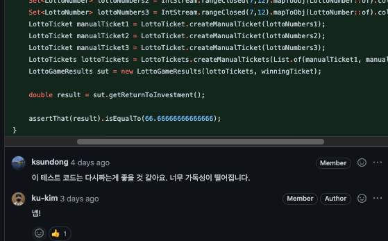 // 전체 소스 코드 : https://github.com/ku-kim/java-lotto/tree/ttasjwi/src/main/java/domain/lotto