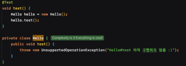 TDD로 테스트 코드 작성 시 메서드를 자동 완성으로 만들 때 아직 구현하지 않고 넘어가기도 한다. 그때 return 타입이 null이나 기본 타입의 기본값(int의 경우 0)으로 남는 경우 구현하지 않았음에도 모르고 넘어가 문제가 될 수 있기 때문에 예외를 던져주는 것으로 바꾸었다.